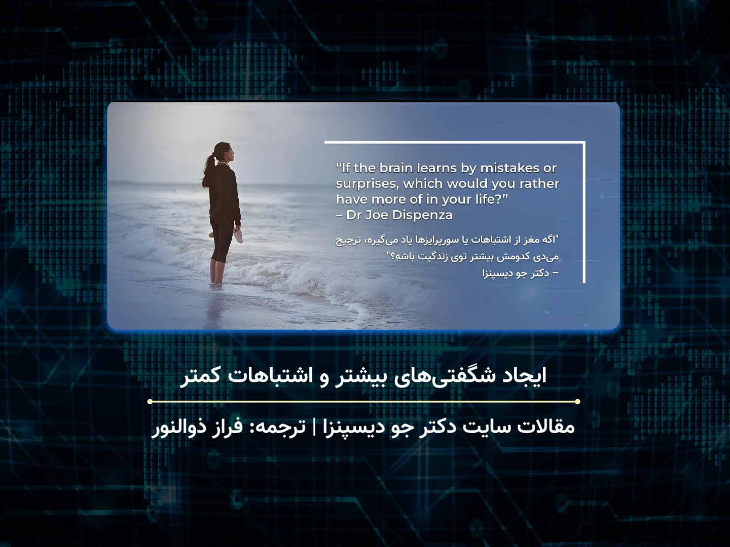 تحلیل اشتباهاتمان مزایایی دارد. اگر از پلهها پایین بروید و سرتان به تیرک بخورد، دفعه بعد بیشتر احتیاط خواهید کرد. ما با تمرکز بیش از حد بر روی یک اشتباه به مشکل برمیخوریم. آن اشتباه معمولاً به احساساتی مانند احساس پشیمانی، احساس گناه یا احساس رنج مرتبط است و این احساسات به افکار خاصی مرتبط میشوند. هر بار که به آن اشتباه فکر میکنید، مغز شما همان مواد شیمیایی را ترشح میکند که گویی آن تجربه در حال حاضر در حال وقوع است و این باعث میشود همان احساسات مربوط به آن تجربه گذشته را دوباره احساس کنید. و اگر این احساسات افکار بیشتری مرتبط با آن احساسات را تحریک کنند و به این ترتیب نتوانید بزرگتر از آنچه احساس میکنید فکر کنید، پس در یک چرخه فکر و احساس ، گرفتار شدهاید که حالت وجودی شما را ایجاد میکند. از دیدگاه بیولوژیکی، اکنون شما در گذشته زندگی میکنید.